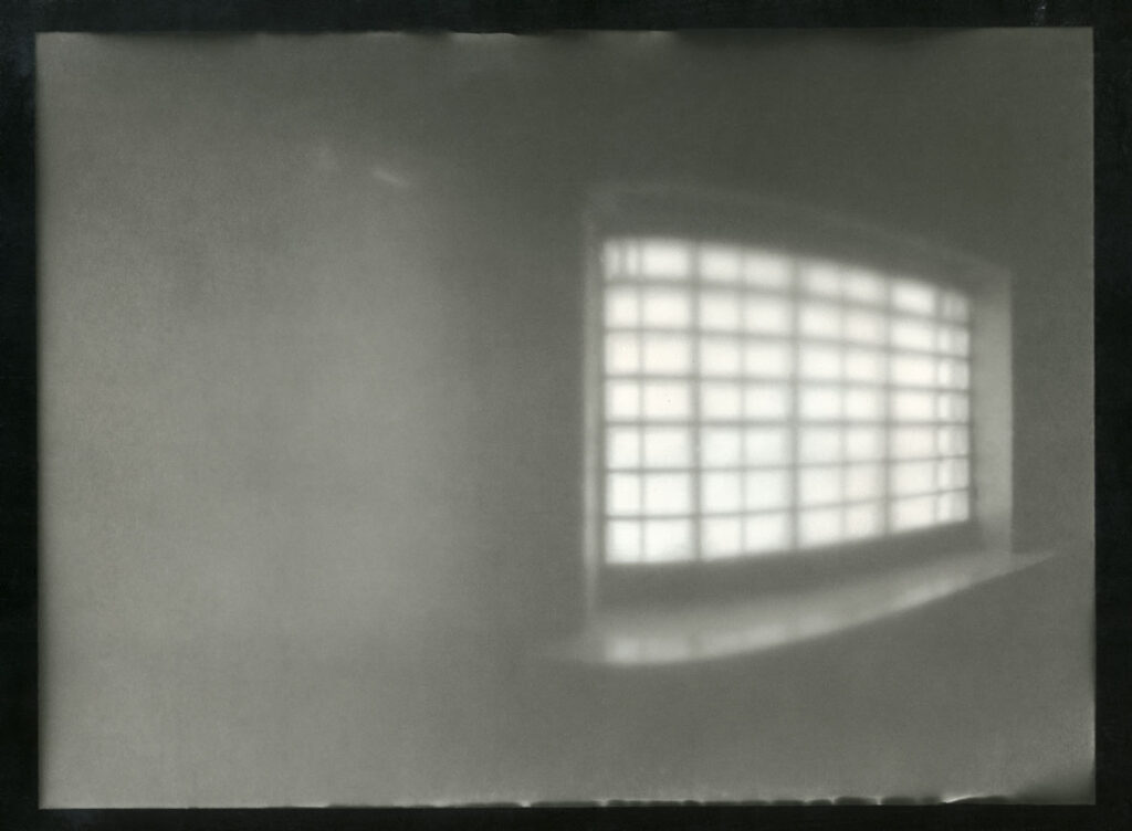 Die Arbeiten bilden die durschnittliche Haftdauer der politischen Gefangenen von 127 Tagen auf lichtempfindlichem Papier ab, auf dem die Lichteindrücke gesammelt werden, die während dieses Zeitraumes durch die Glasbausteine in die Zelle gelangen.